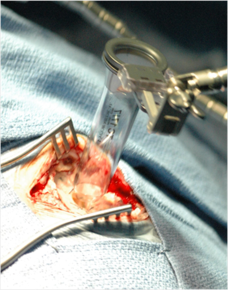 Reduced pressure: The small holes at the base of the introducer allow cerebral fluid to escape during insertion, reducing intracranial pressure spikes and potentially minimizing tissue trauma; particularly important when inserting a tubular retractor into a closed system such as the intracranial ventricular.